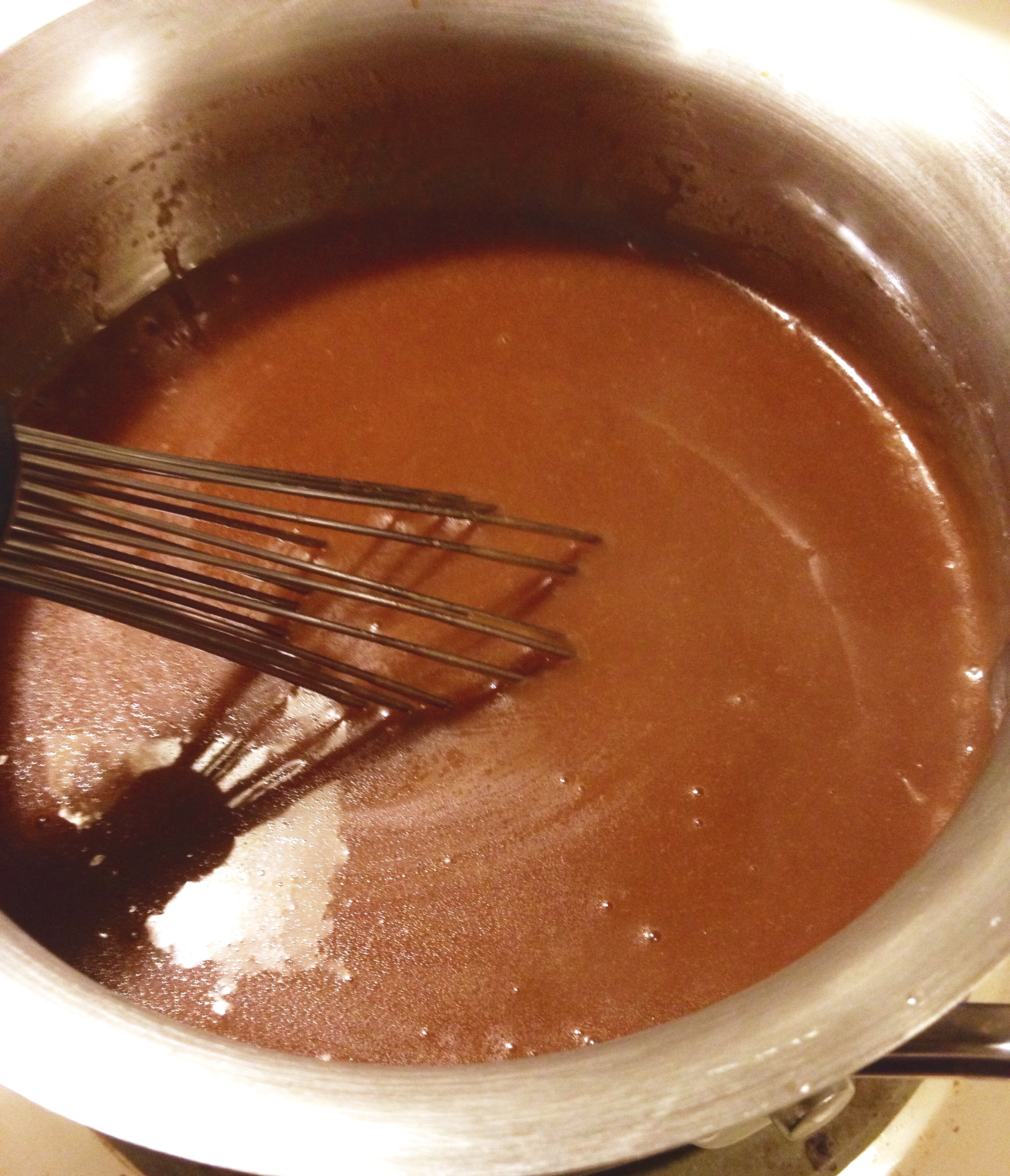 - Add butter and coconut oil, whisking until smooth and silky like hot fudge sauce.
